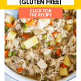 If you love classic chicken pot pie but don’t love all the steps that come with it, this deconstructed chicken pot pie is going to be your new go-to. It’s everything you love about pot pie, creamy chicken, cozy veggies, herby flavor, just made simpler. No rolling dough, no extra fuss. Instead, we’re turning it into a hearty, comforting soup and topping it with fluffy, golden gluten-free biscuits. It’s the same nostalgic flavor, just a whole lot easier to pull off on a busy weeknight.