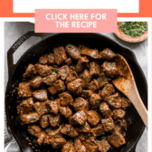 This garlic butter steak bites recipe creates tender, juicy steak pieces coated in a rich, savory butter sauce infused with garlic. Made in one pan in less than 30 minutes, itโs a restaurant-worthy meal perfect for a quick steak dinner, meal prep, or even an impressive appetizer!