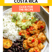 This Costa Rica-inspired garlic shrimp is packed with bold flavor from fresh garlic, butter, and warm spices. It comes together quickly in one skillet and is perfect served with rice, fried plantains, black beans, and alongside a fresh salad.