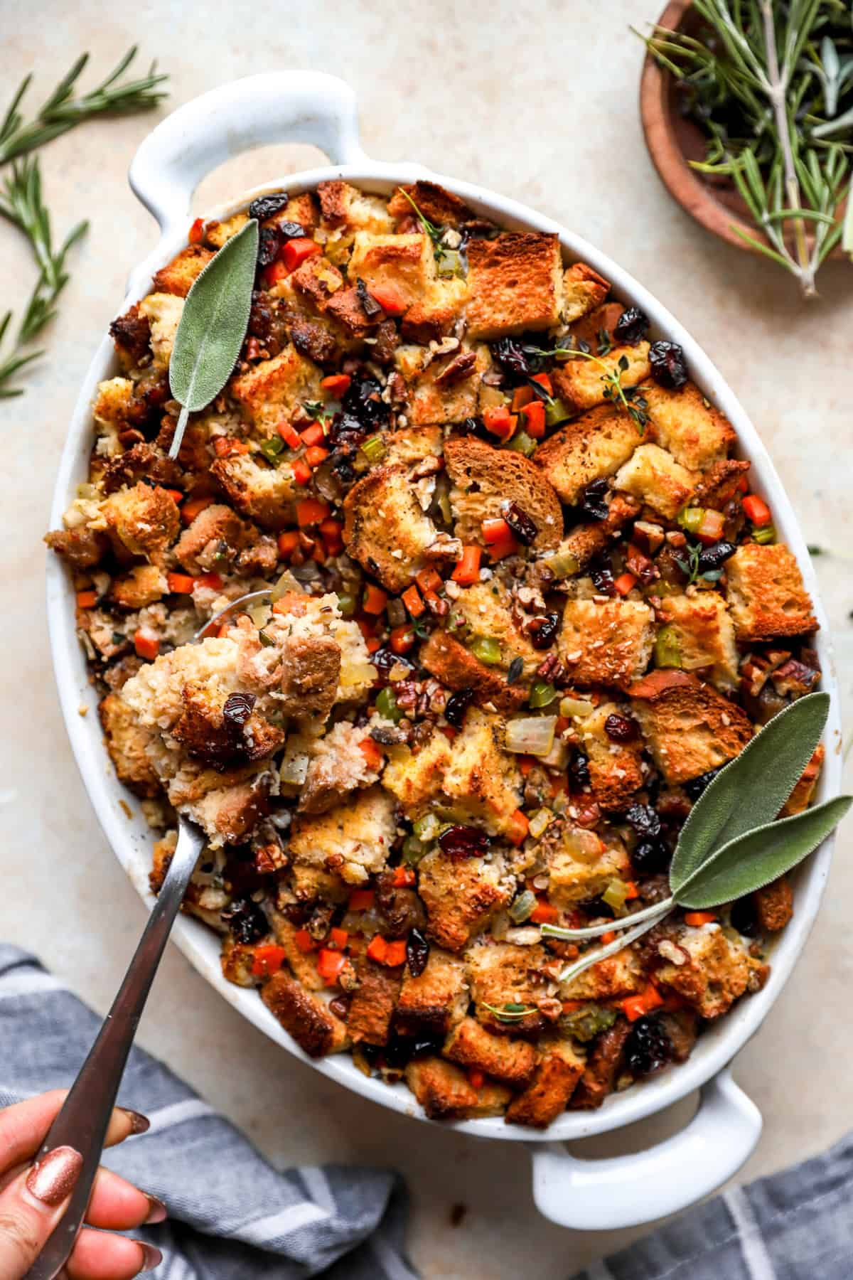 - Fresh Herbs: Sage, thyme, and rosemary — the heart of any great holiday stuffing, the spices.