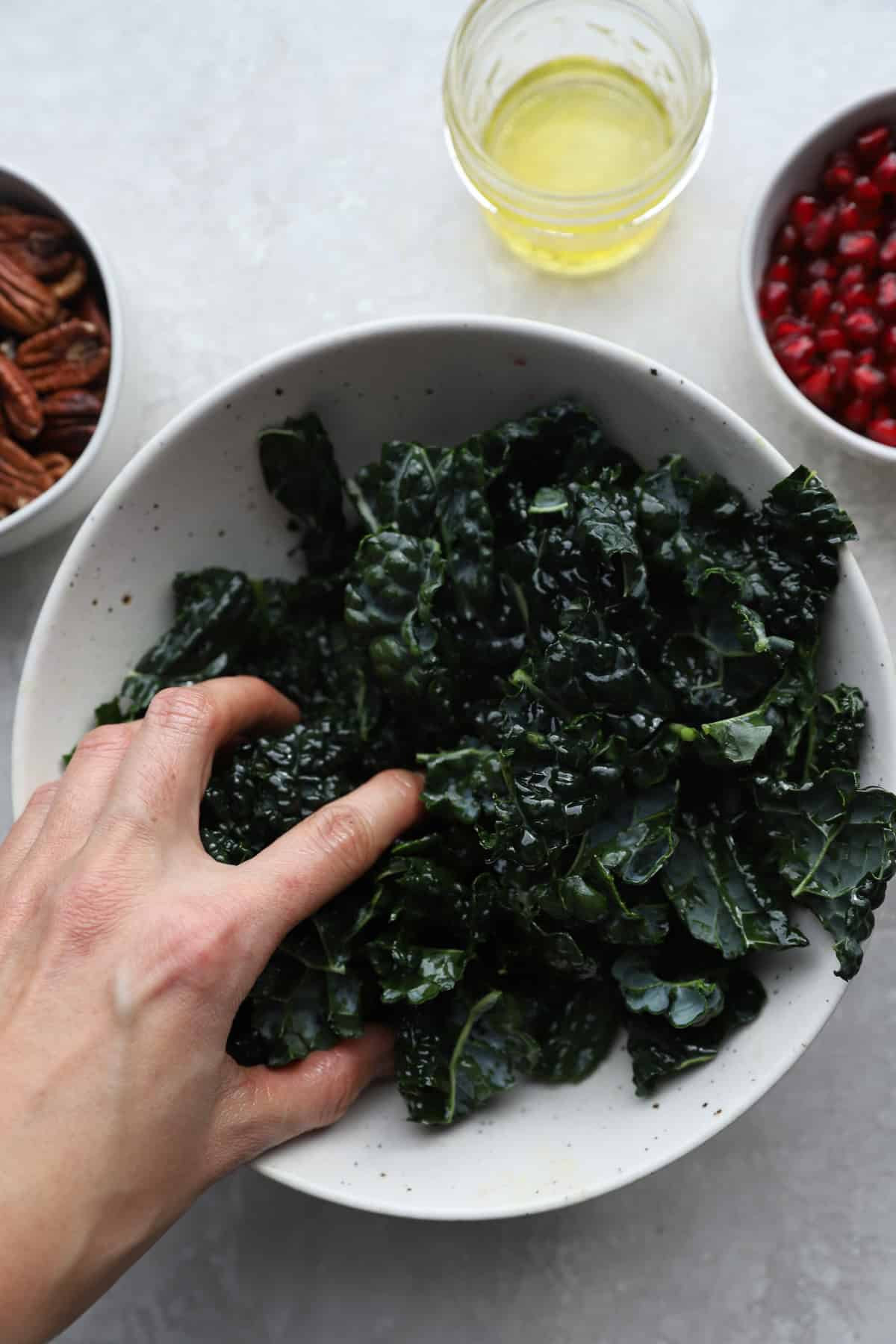 • Massage kale with olive oil for 1-2 minutes.