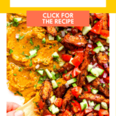 This loaded hummus recipe is the best way to elevate the classic appetizer dip and can even be enjoyed as a main course. Rich, savory, refreshing, creamy, and crispy, it has it all and is super quick to make!