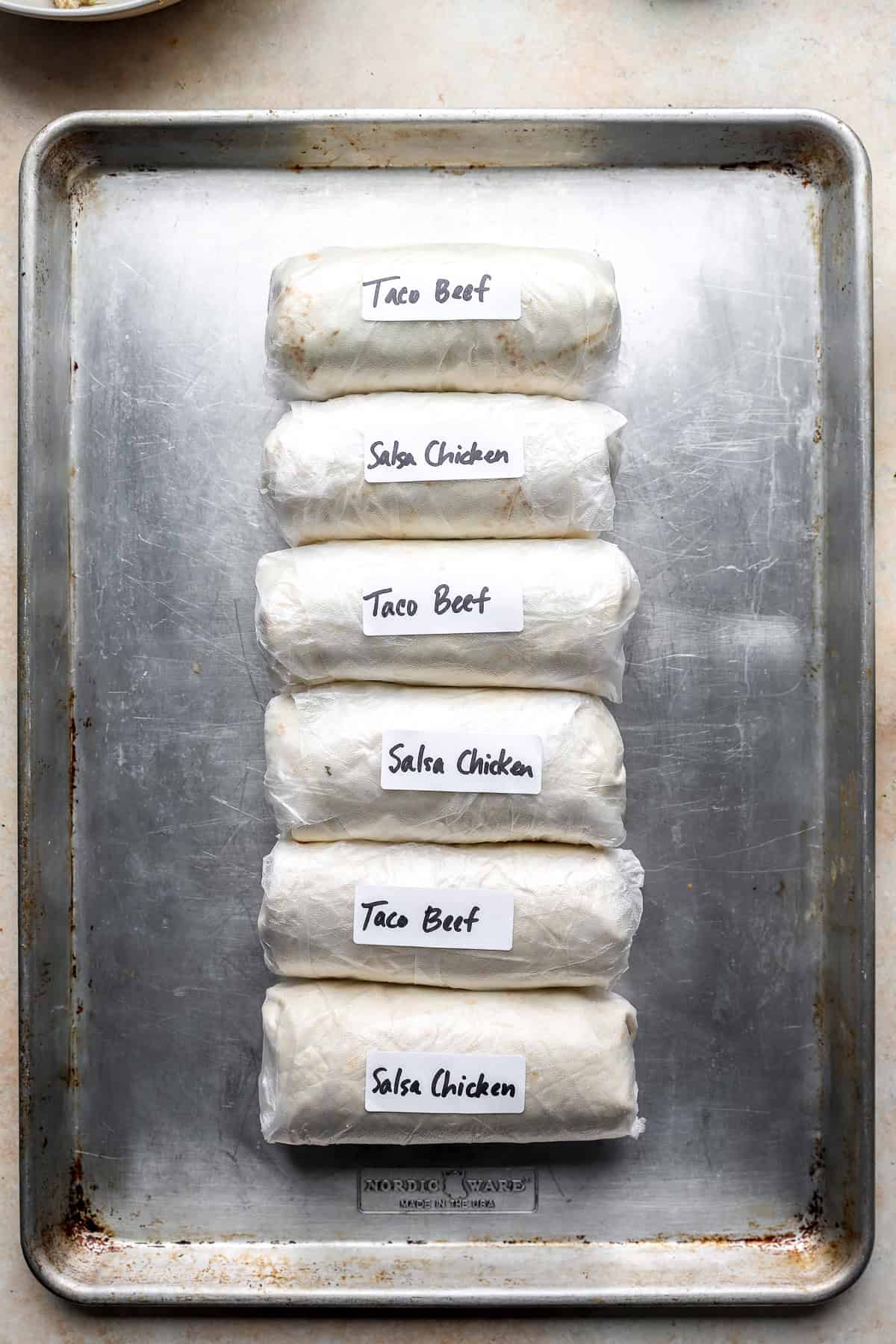 - Flash freeze. Freeze the burritos on a sheet pan until solid, then store them together.