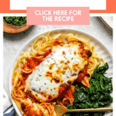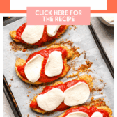 I like to pair this gluten-free chicken parmesan with zucchini noodles, spaghetti squash, or (if I’m not trying to enjoy it as a low-carb meal) gluten-free pasta!