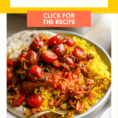 This salmon shawarma recipe comes together with bright citrus, flaky fish, a savory tomato garlic sauce, and bold shawarma seasonings. Quick and easy to prepare, it’s a 30-minute sheet pan dinner that I love for busy weeknights and meal prep!
